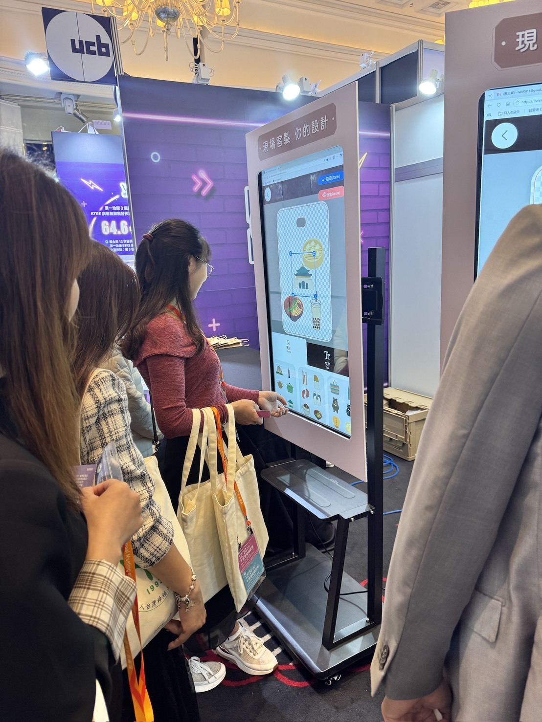 現場設置大尺寸螢幕,讓賓客可清楚查看設計畫面,並自由選擇貼圖元素、 輸入姓名、紀念文字或活動標語,依個人喜好進行排版調整, 即使第一次操作也能快速完成專屬設計。