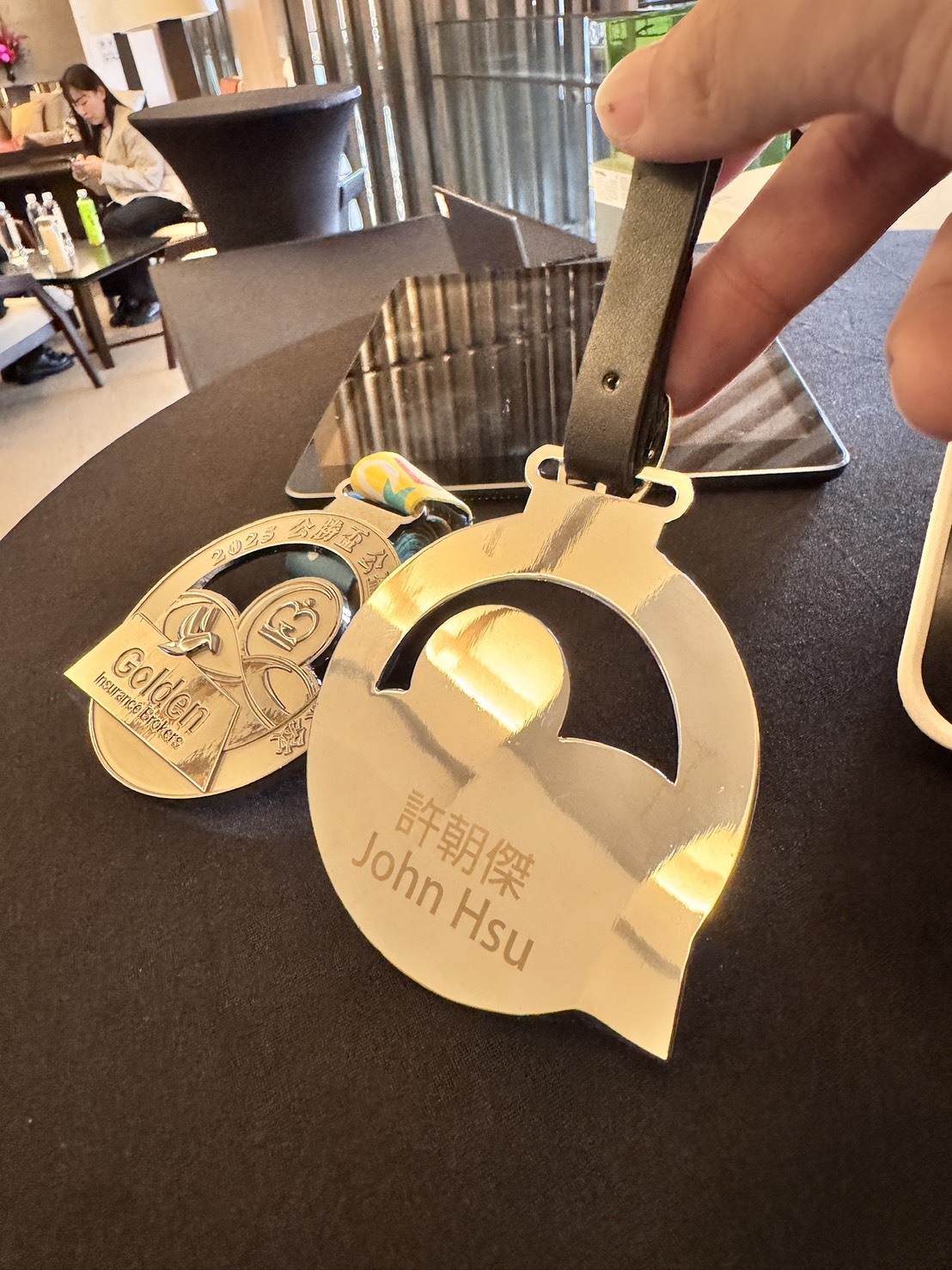 我們於宴會廳入口設置攤位,選手輸入完成後即可開始雷射雕刻。等用餐結束後,每位選手都能領取一面屬於自己的客製化獎牌,為這場公益賽事留下獨一無二的紀念。