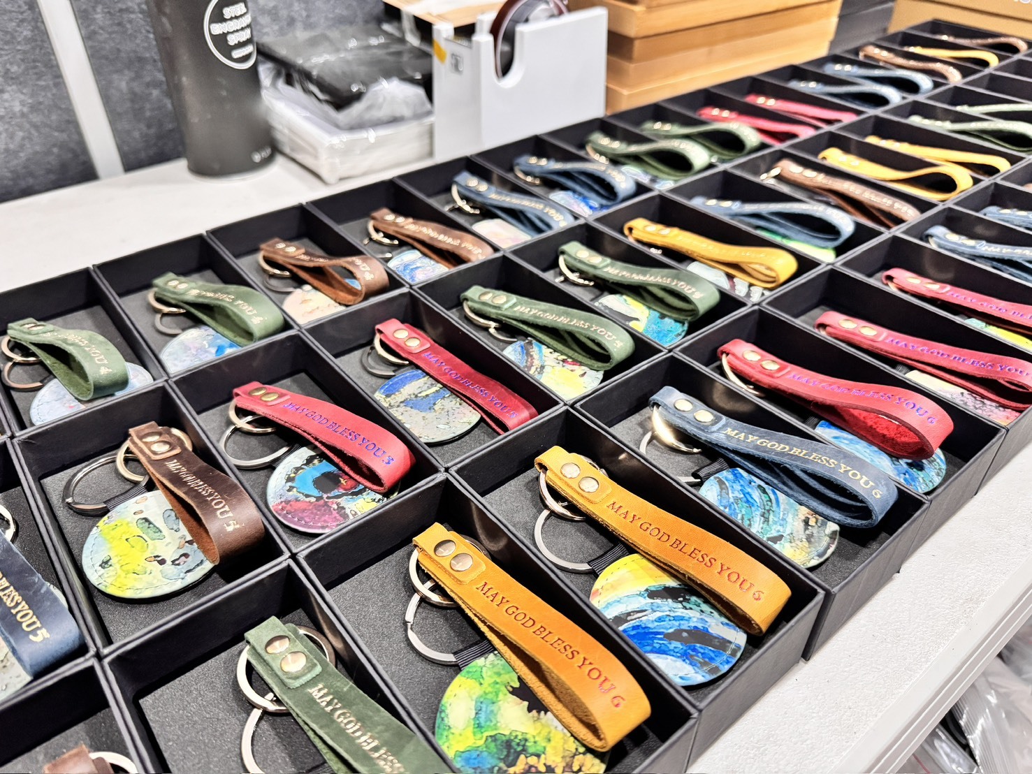 🎨 把藝術變成禮物:非營利組織的專屬客製化鑰匙圈計畫非營利組織活動禮品:專屬皮件客製化鑰匙圈每個人都能擁有畫作的一小部分這次我們與一個非營利組織合作,對方舉辦了一場充滿創意的藝術活動。參與者共同完成多幅大型畫作,活動結束後,主辦單位希望能讓每位參與者帶走一份紀念——於是產生了這個想法:「將畫作分割成許多小圖,印製在專屬的鑰匙圈上,讓每個人都能收藏作品的一小部分。」🔧 客製化細節與設計規劃為了讓禮品更具質感與收藏價值,我們提出了進一步的設計建議:皮件搭配多色選擇: 皮革顏色包含深綠、深藍、棕色、紅色、芥末黃等,每一個都能搭配不同的畫作色調。皮革燙印文字客製: 可選擇燙金、燙銀或無色壓印,印上「MAY GOD BLESS YOU」或其他專屬字句。高質感禮盒包裝: 採用黑色天地蓋禮盒,內襯EVA泡棉,盒蓋以玫瑰金燙印LOGO,讓每個禮品開箱瞬間更有儀式感。這項合作的難度相當高,每一個鑰匙圈都印上不同的圖案,皮件與壓印顏色也不盡相同。即便如此,最終成果完美呈現,客戶非常滿意,目前已著手規劃第二批製作。💡 沛森不只是製造,我們提供整合解決方案沛森不僅是OEM生產廠商,更是專業的整合執行夥伴,提供:禮品設計與包裝規劃現場印製與活動體驗設備租借與技術支援行銷整合與品牌合作提案我們擅長將「活動理念」轉化為「具體可收藏的禮品」,不論是藝術活動、企業尾牙、品牌記者會或VIP會員活動,都能幫助品牌創造令人難忘的體驗。📞 聯絡我們想為你的活動打造專屬禮品嗎? 歡迎與沛森聯繫,我們提供一對一客製化諮詢,協助你從概念到成品一次完成。👉 點此聯絡我們標籤: 企業禮品、客製化鑰匙圈、活動贈品、皮革燙印、禮盒包裝、非營利組織禮品、沛森文創